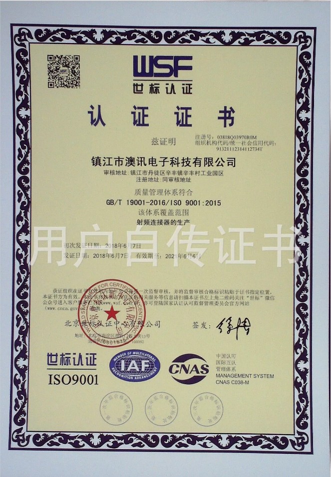 鎮(zhèn)江市澳訊電子科技有限公司,占地面積5000平方米,現(xiàn)有員工近百名,各類技術(shù)人員占15%。我公司專業(yè)從事射頻同軸連接器的設(shè)計、研制、開發(fā)、生產(chǎn)、銷售。